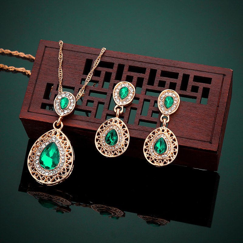 আকর্ষণীয় গ্রীন স্টোন ও গোল্ডেন ফিনিশের এই নেকলেস ও ইয়াররিংস সেটটি আপনার লুকে এনে দেবে রাজকীয় ও এলিগ্যান্ট সৌন্দর্য। পার্টি, বিয়ে বা বিশেষ যেকোনো অনুষ্ঠানে স্টাইলিশ ও ক্লাসি লুকের জন্য এটি পারফেক্ট একটি জুয়েলারি সেট।